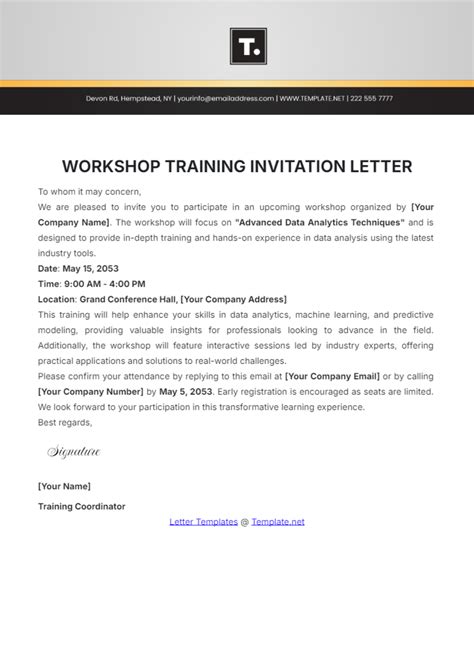 Workshop Invitation Letter Template - One of the most crucial aspects of planning a workshop is inviting attendees to participate. Writing an invitation letter for a training workshop can be a bit challenging, but with the right tips and examples, you can create an effective and engaging invitation letter. We have put together some invitation letter samples for workshops that you can use as a..